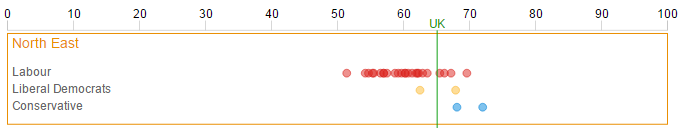 Billing itself as “reliable evidence for politicians and journalists – data for everyone”, it allows interactive visualisation of many interesting demographics/behavioural/political attributes by UK political constituency. It’s easy to view distributions and compare between a specific contstituency, the region and the country on topics like