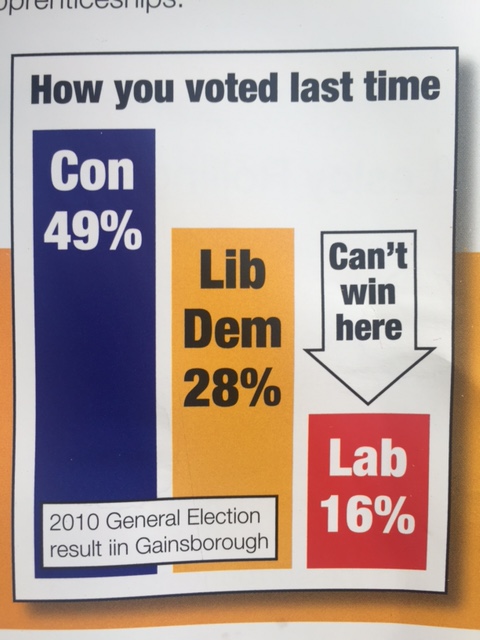 Here goes the Liberal Democrats, being honest enough to admit that their main selling point around here is that they got more votes in our area last time than the next largest party did.