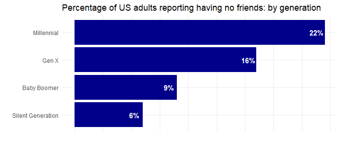 (Out of interest, 27% of Millennials reported no close friends, and 30% having no best friends – and yes, pedants, some people did report having more than one ‘best’ friend).