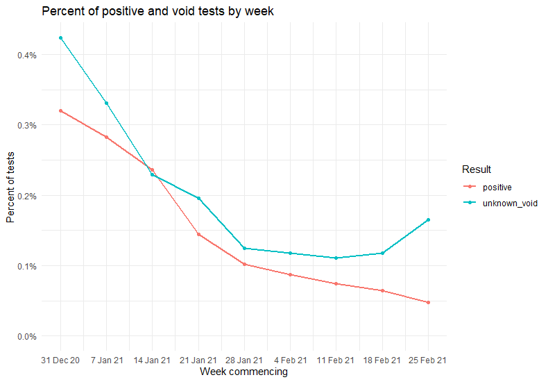Actually it doesn’t seem that that is the main driver of slightly increased void rates. The effect is more noticeable in students than staff, with the former still being tested at school.