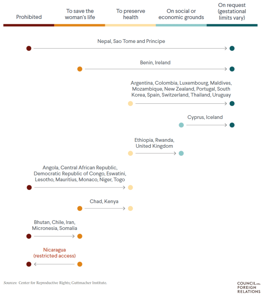 Nonetheless, moving towards abortion bans is against the overall trend in a world where countries are typically going from more restrictive to more liberal legislation. The Council on Foreign Relations reports that: