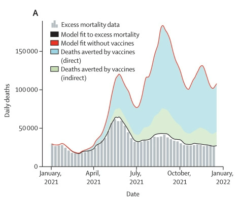 In a new study published in the Lancet, Watson et al. estimate that by the end of 2021, the Covid-19 vaccines have prevented an estimated 14.4 million deaths (with a 95% credible interval of between 13.7- 15.9 million deaths) .