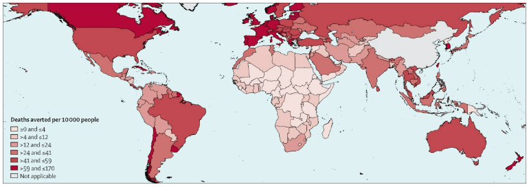 When one looks at the map of lives saved per capita, it’s obviously that richer countries got far greater benefit from the vaccines than the poorer ones.