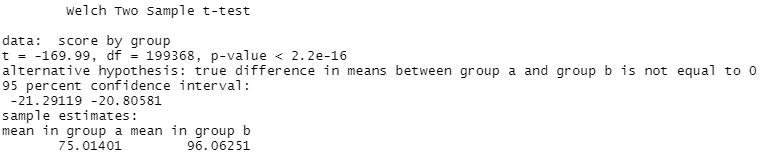 Imagine we were to perform a test to see if the scores for the groups are statistically different from each other. Let’s assume a basic t test would work for this.